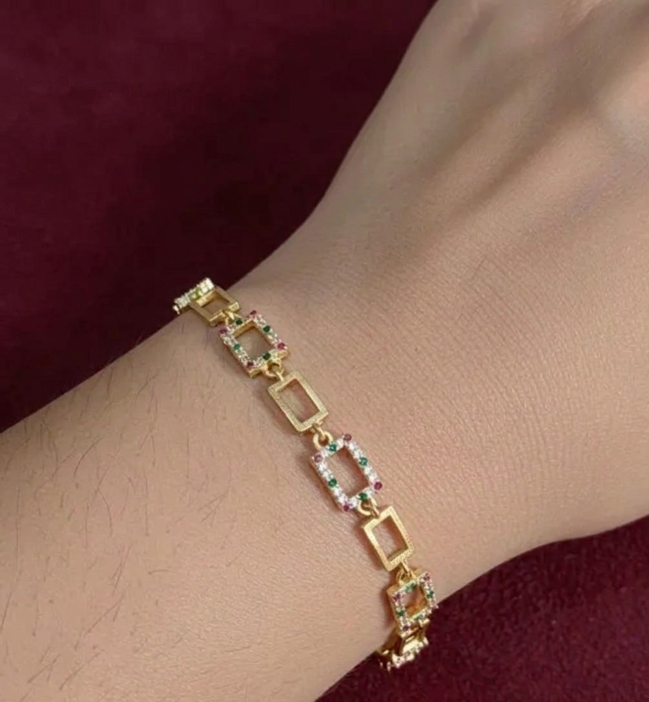Plating: Gold Plated Stone Type: Cubic Zirconia/American Diamond Sizing: Non-Adjustable Type: Link Net Quantity (N): 1 Sizes:Free Size free size daily wear south indian bracelet for women and girls Country of Origin: India