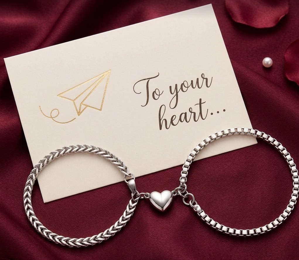 Heart charm braclet for strong bonds With couple rings colour ( silver ) magnetic easy return (within 3 days )