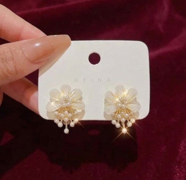 Glided flower layer earing 🌷 Base Metal: Alloy Plating: Gold Plated Sizing: Adjustable Stone Type: Pearls Type: Drop Earrings Net Quantity (N): 1